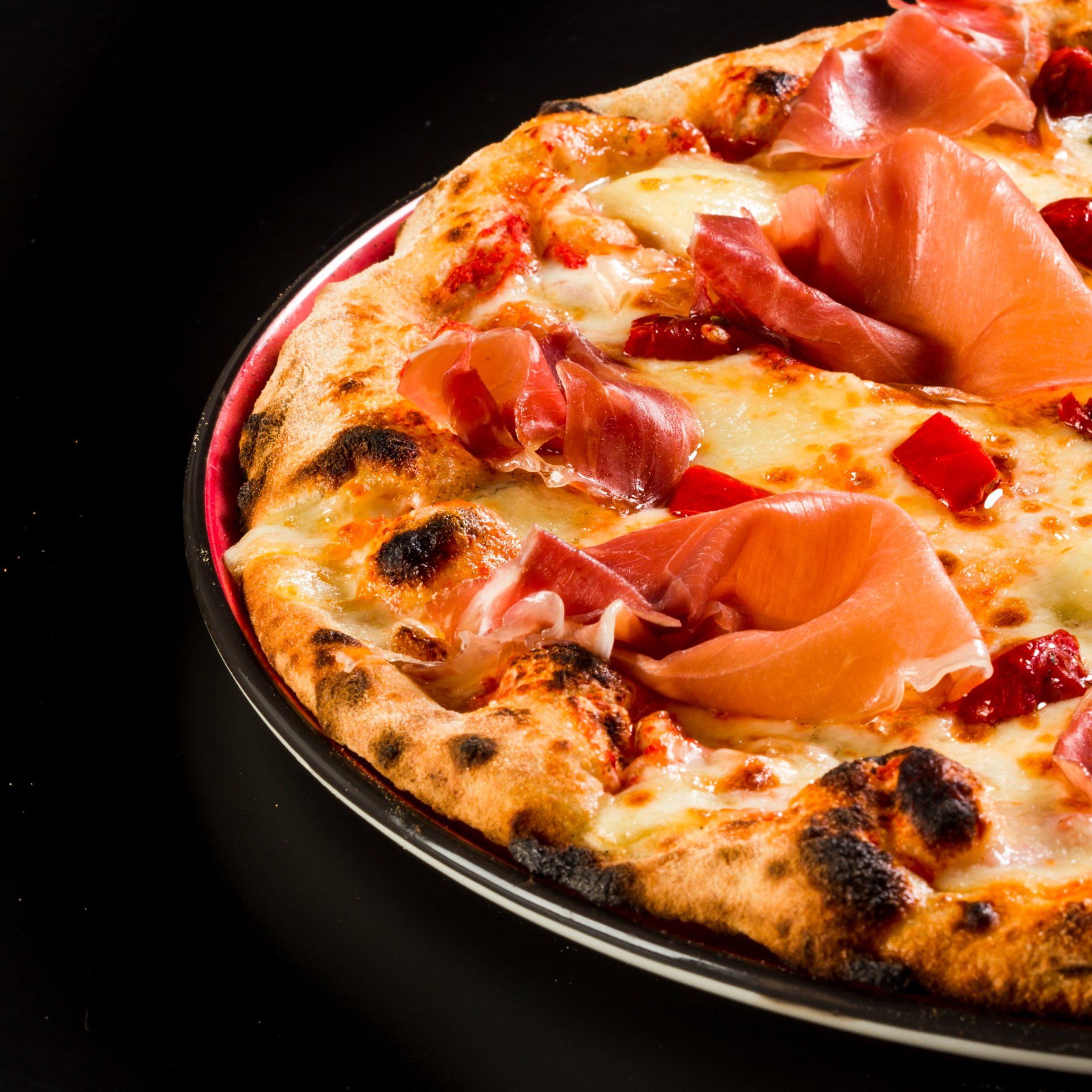 Todas las pizzas están elaboradas con nuestra exquisita masa artesana de fermentación prolongada, salsa hecha en casa con tomates italianos y queso Mozzarella fior di latte Italiano.
